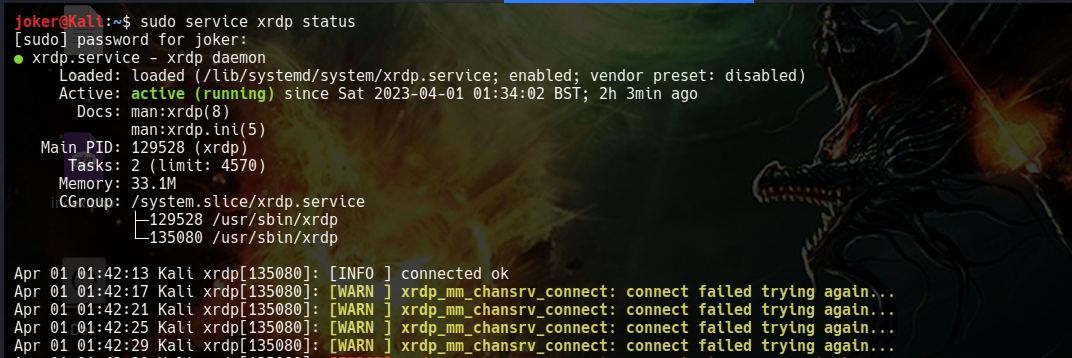 sudo service xrdp status