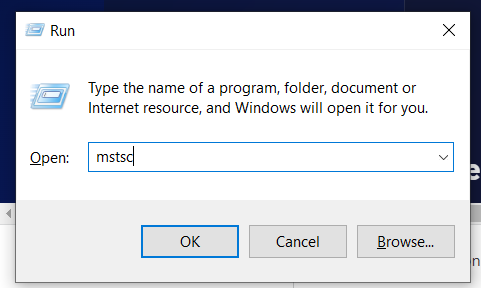 Now you can use the RDP client to login into your machine. Search for "remote" and you will find "Remote Desktop Connection", open that. Alternativelly,you can press "Windows + R" and typing mstc