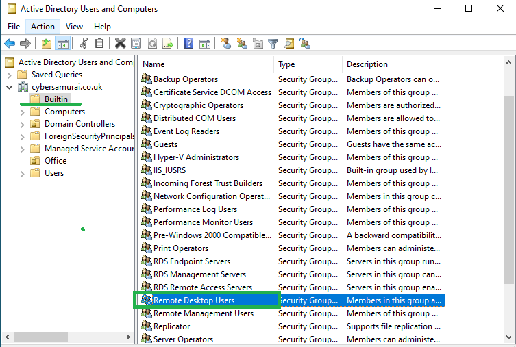 Add our Admin account to the Built in Groupd Remote Desktop Users