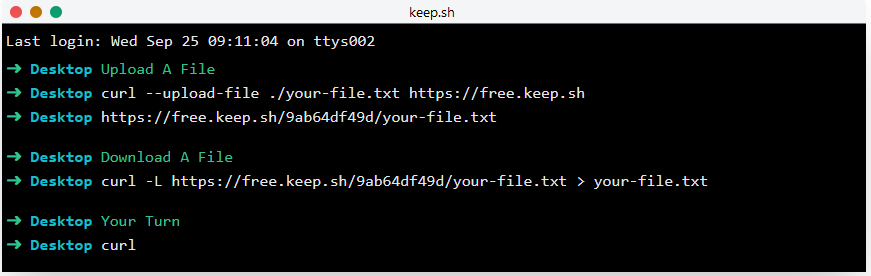 The website www.keep.sh is one example of website commonly used by threat actors where they can download and upload files straight from the command line.