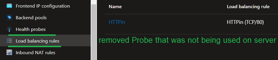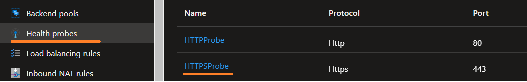 On the example above we have two servers that are running, however, the server only has the port 80 open, and because the Load Balaner is sending a probe to port 80(HTTP) and 443(HHTPS) it will report the servers as unhealthy.