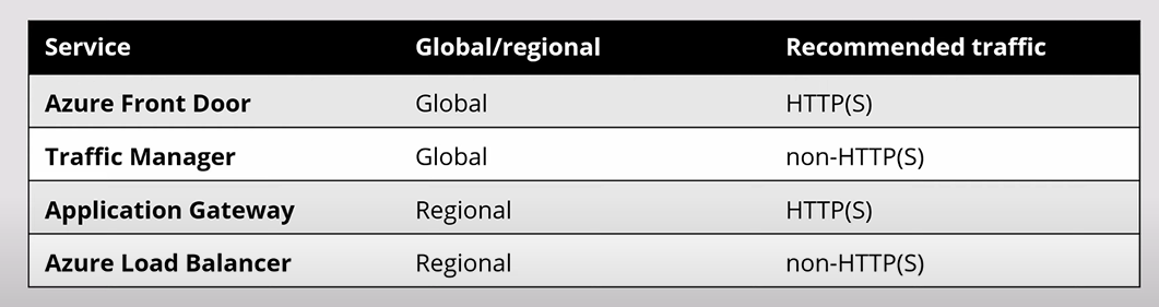 The way load balance difference from the other services from Azure is that Load Balance is designed for non-HTTP regional services. If we need to route traffic for a web application its recommend we use Application Gateway instead.